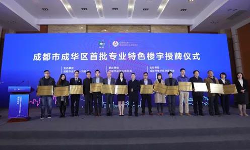 上午九時授牌儀式開始,成華區商務局局長戴運書宣讀了《關于認定成華區第一批專業特色樓宇的通知》,隨后成華區副區長鄧旭、樓宇促進會秘書長張萍向獲評專業特色樓宇的企業代表授牌,并向獲評企業表示了祝賀。