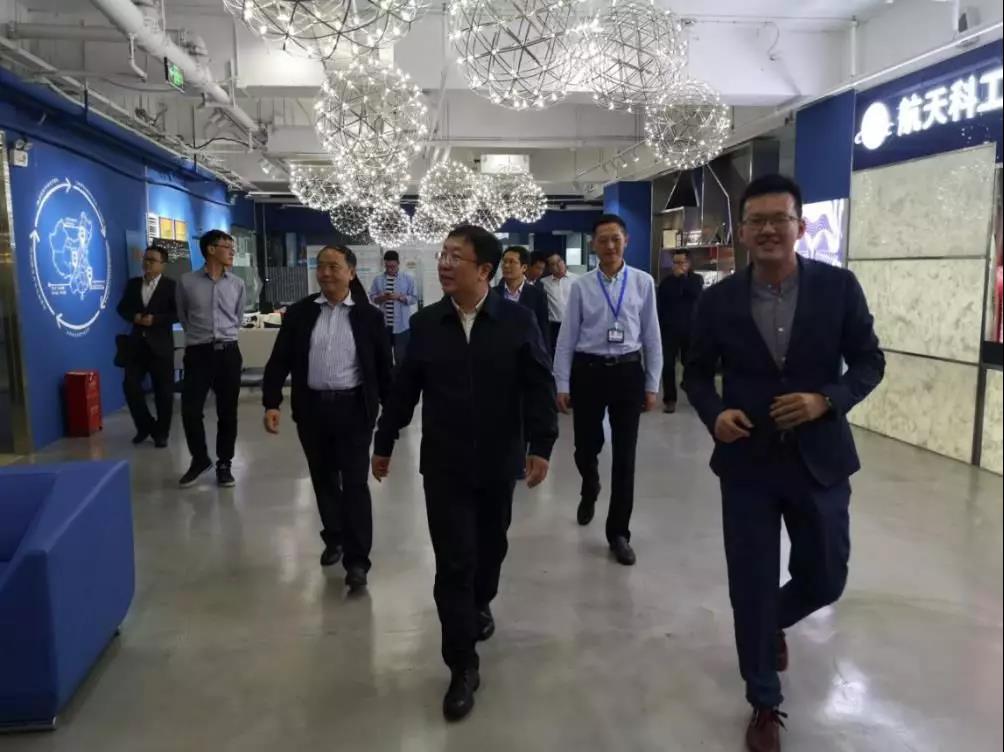 陳國瑛一行首先到通信研究院雙創空間參觀調研,雙創運營團隊負責人介紹了雙創空間的設計理念、裝修風格及運營規劃,并在參觀過程中就臺灣阿里山小火車、川劇變臉、熊貓抱火箭等設計元素所代表的深層含義進行了講解,陳國瑛對雙創空間的特色設計和運營規劃表示了肯定。